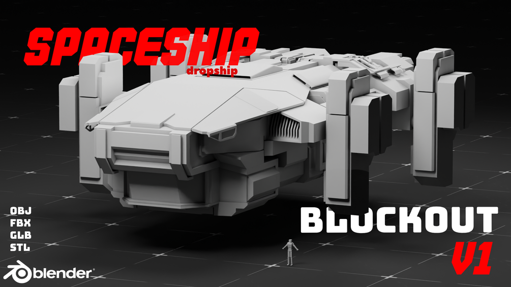 Youll get a spaceship dropship blockout (.blend, obj, stl, fbx, glb)